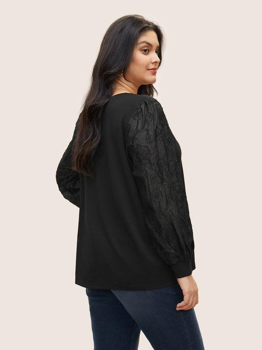 Plain Chiffon Patchwork Lantern Sleeve Sweatshirt