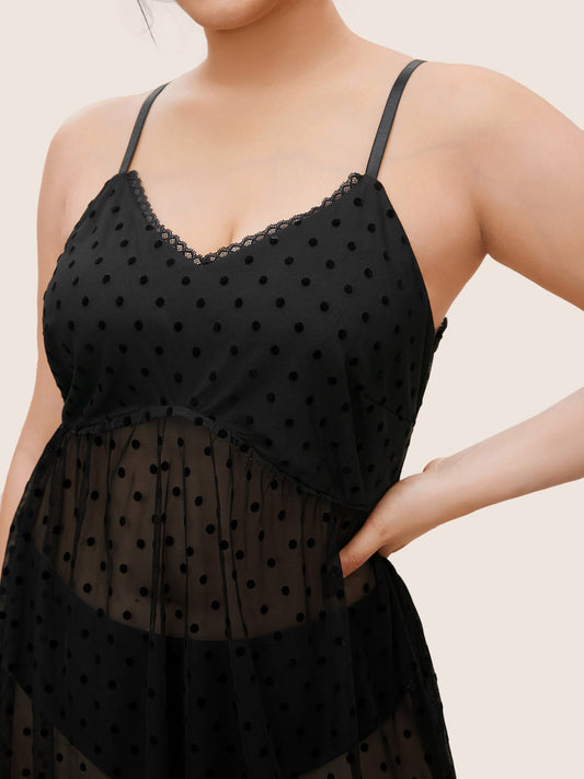 Polka Dot Lace Patchwork Mesh Sleep Dress