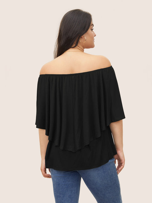 Plain Off Shoulder Ruffle Sleeve T-shirt
