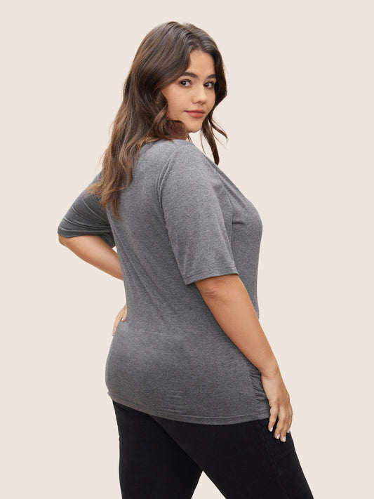 Plain Crew Neck Twist Front Gathered T-shirt