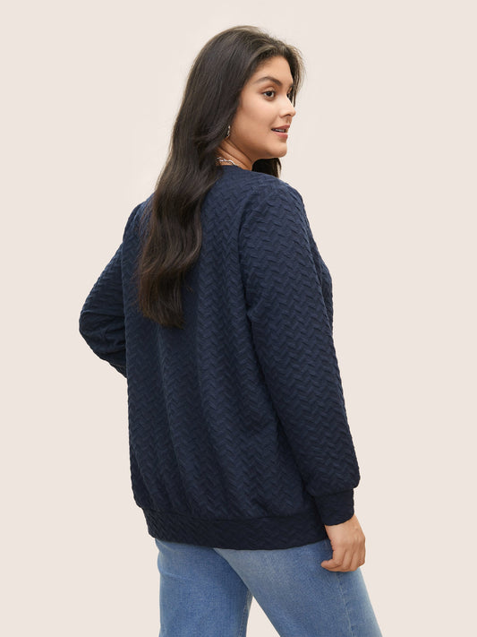 Solid Geometric Jacquard V Neck Sweatshirt