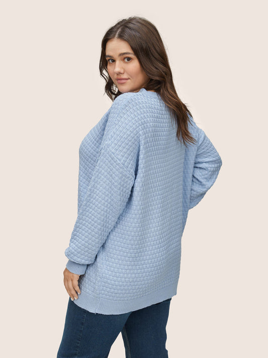 Plain Texture Round Neck Elastic Cuffs Pullover