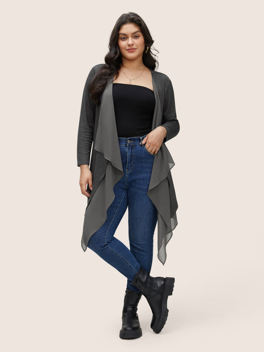 Patchwork Chiffon Mesh Asymmetrical Hem Kimono