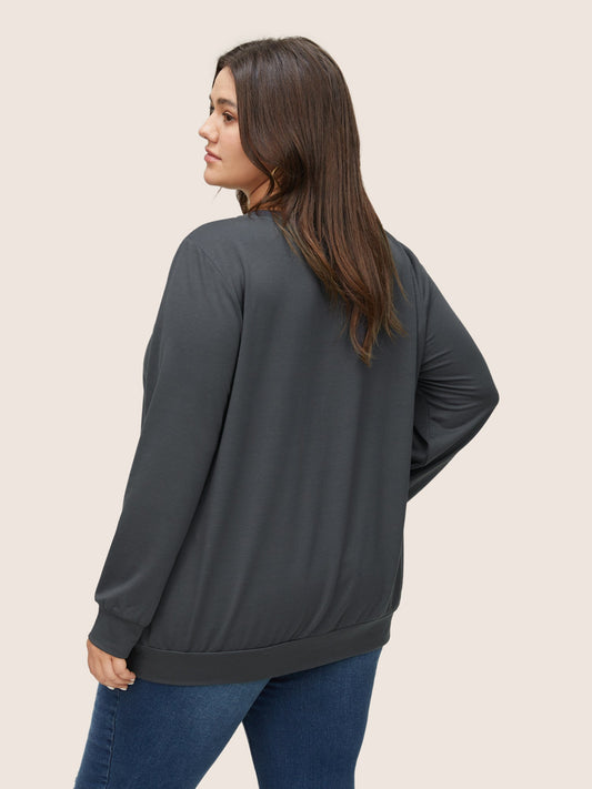 Heart Pattern Contrast Crew Neck Sweatshirt