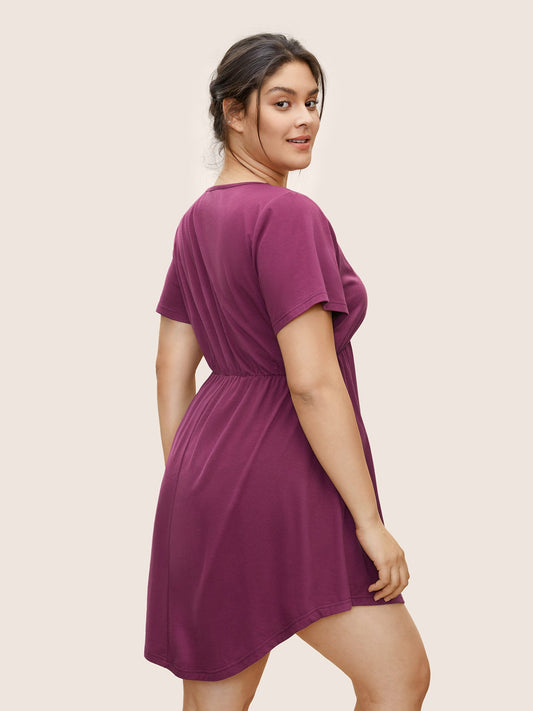 Plain Lace Panel Elastic Waist Curved Hem Sleep Dress
