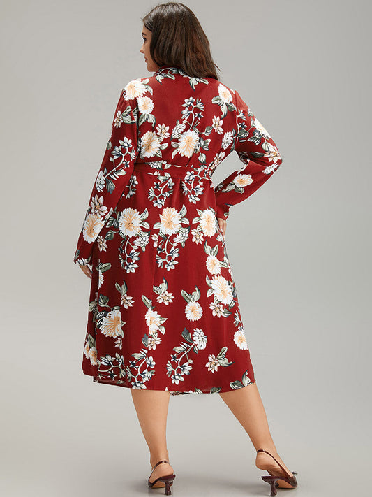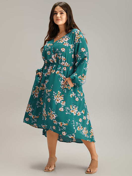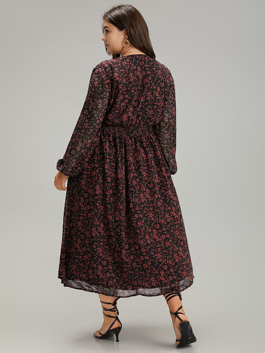 Chiffon Ditsy Floral Pocket Shirred Cuffs Dress
