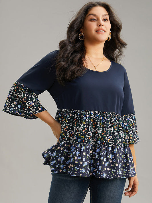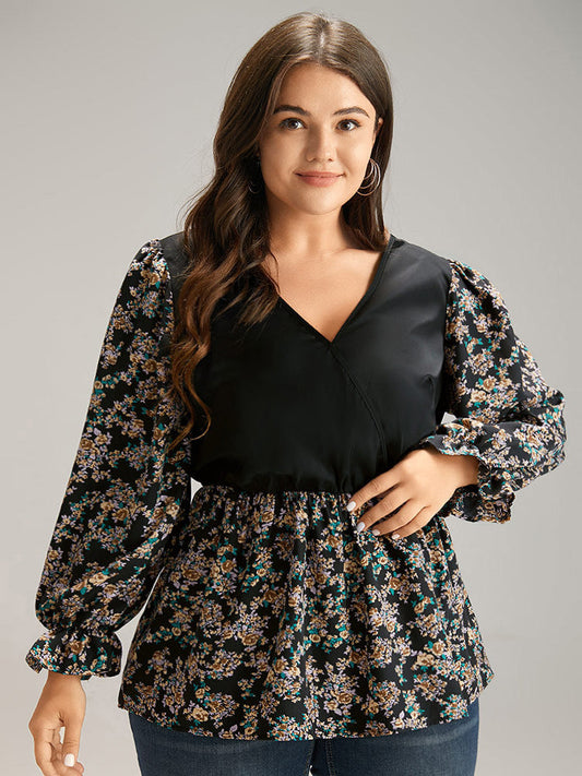 Ditsy Floral Patchwork Elastic Waist Blouse