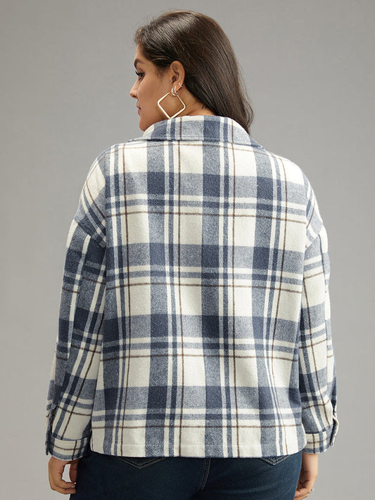 Plaid Lapel Collar Metal Detail Pocket Shacket