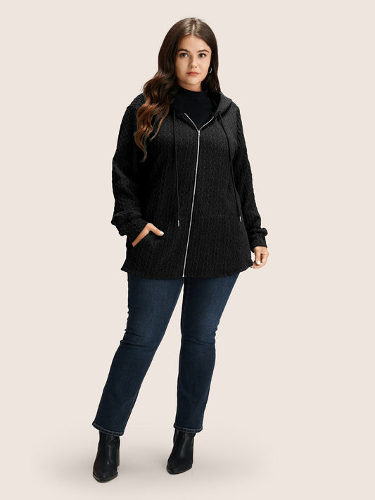 Ombre Hooded Zipper Drawstring Sweatshirt