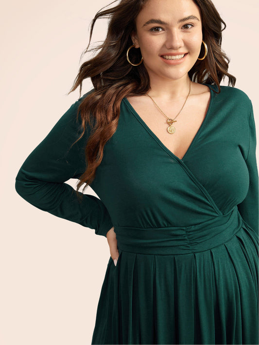 Supersoft Essentials Ruched Wrap Pleated Hem Dress