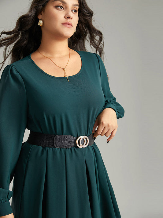 Plain Velvet Elastic Waist Pocket Crew Neck Dress
