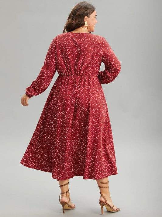Polka Dot Ruched Overlap Collar Pocket Dress