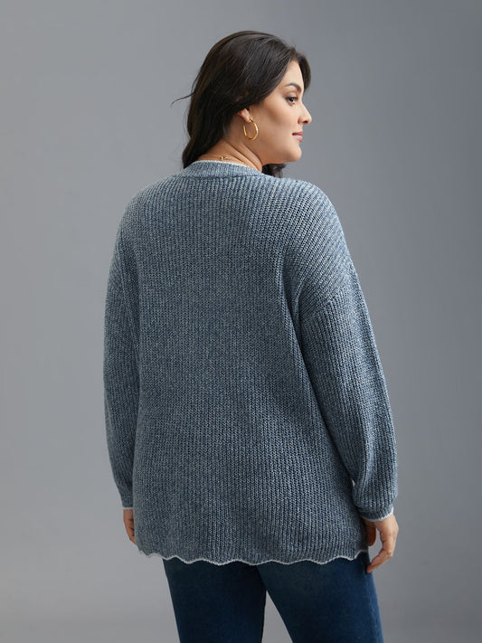 Plain Textured Contrast Trim Cable Knit Pullover