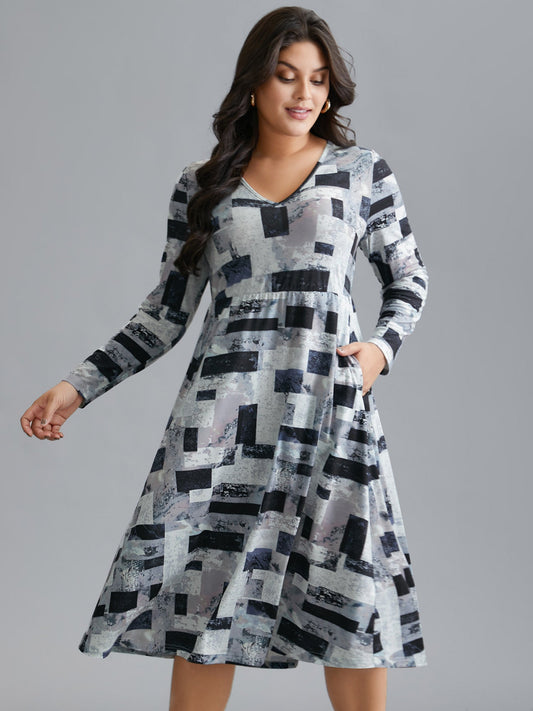 Colorblock Contrast V Neck Midi Dress
