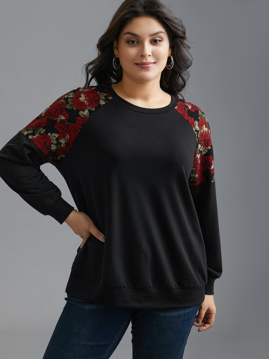 Floral Raglan Sleeve Stretchy Fitted Sweatshirt