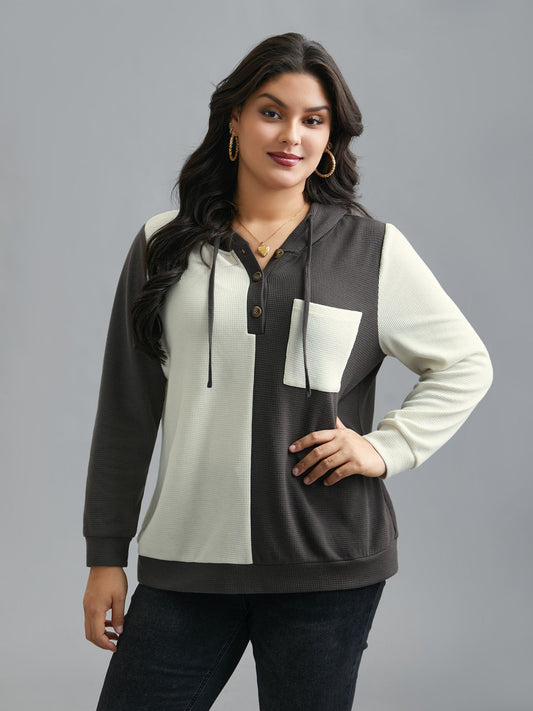 Half Placket Chest Textured Pocket Hoodie