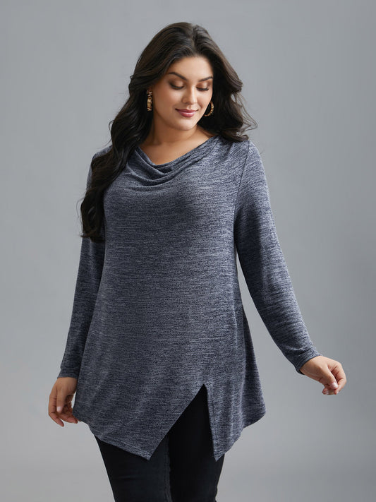 Cowl Neck Side Slit Fitted T-Shirt