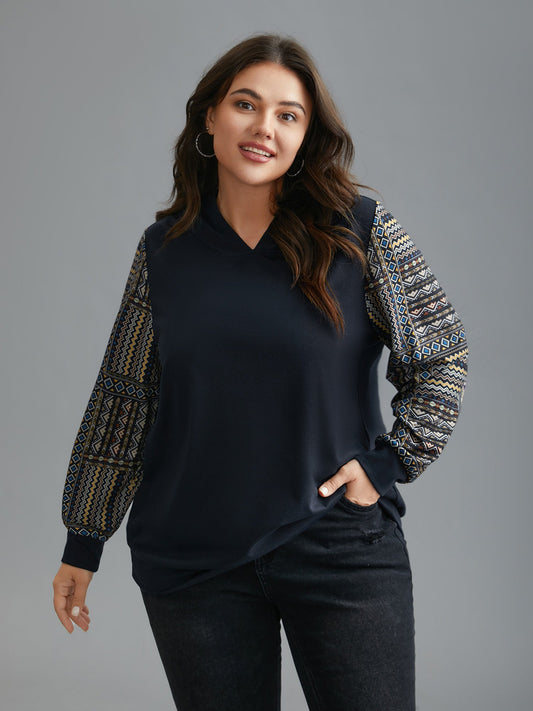 Boho Print Contrast Fabric Hooded Sweatshirt