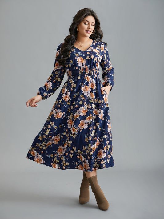 Floral Shirred V-Neck Maxi Dress