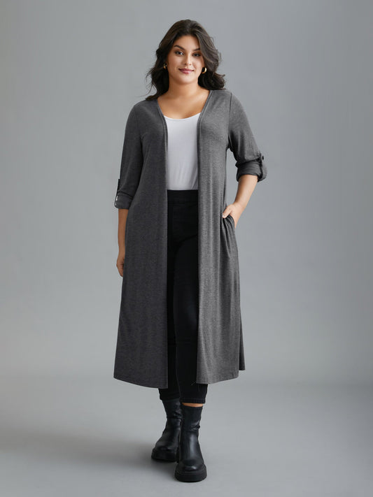 Solid Tab Sleeve Pocket Kimono