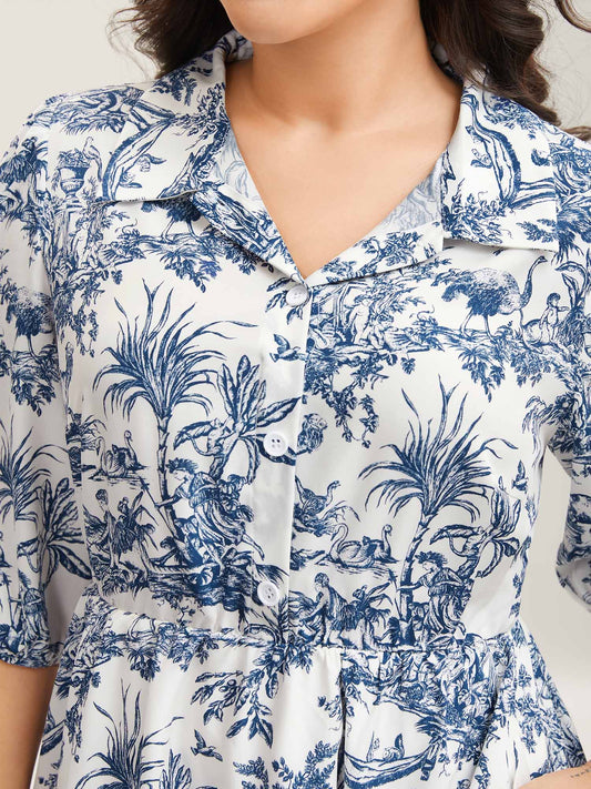 Tropical Floral Print Spliced Blouse