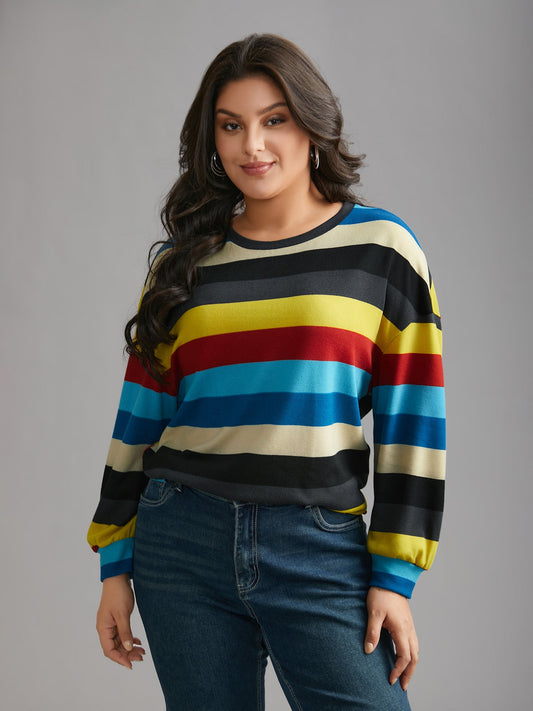 Multi-Color Striped Stretchy Crew Neck T-shirt