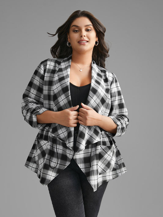 Plaid Drawstring Patched Pocket Coat