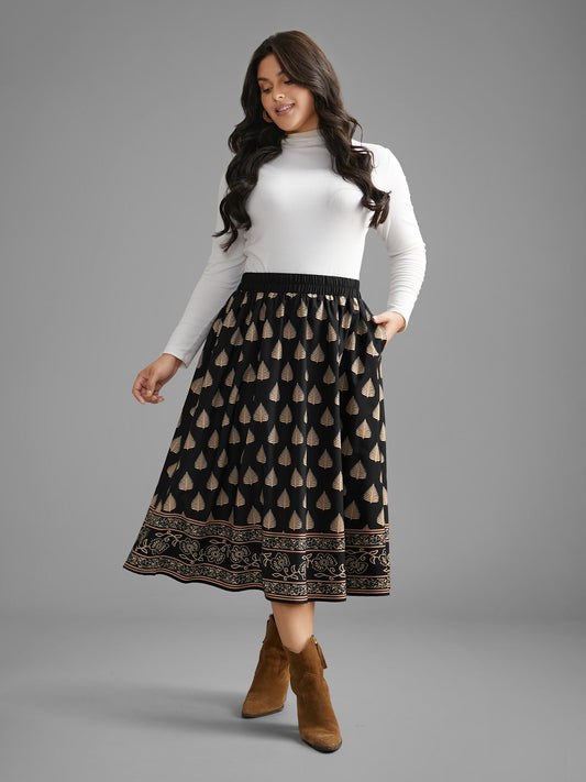Boho Print Elastic Waist Pocket Skirt
