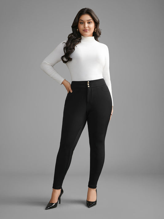 Mid Rise Buckle Detail Skinny Pants