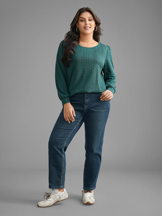 Plain Textured Lantern Sleeve T-shirt