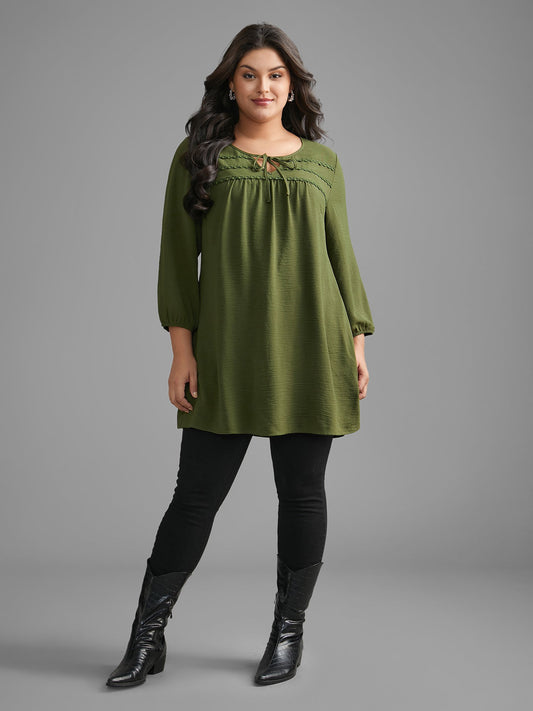 Woven Ribbon Tie Knot Gathered Blouse