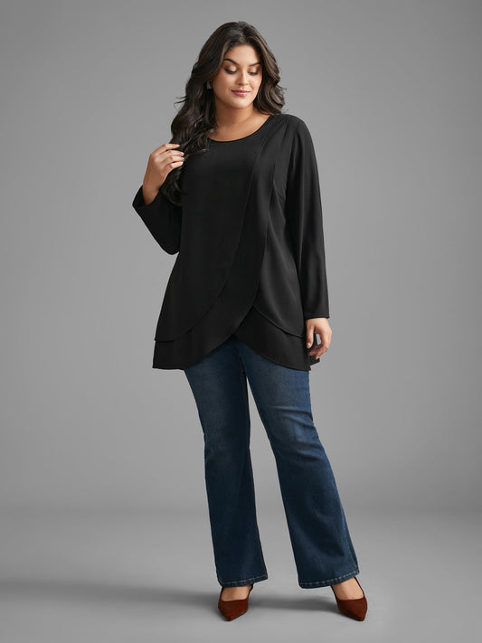 Crew Neck Wrap Tiered Ruffles Blouse