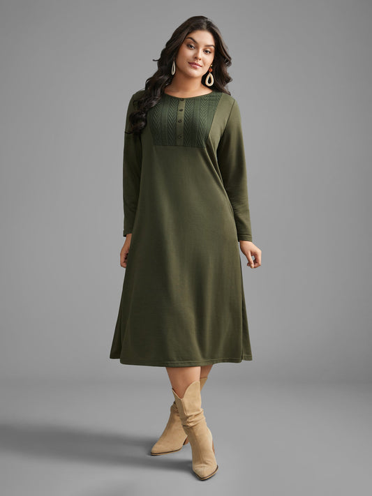 Textured Patchwork Button Detail Midi Dress