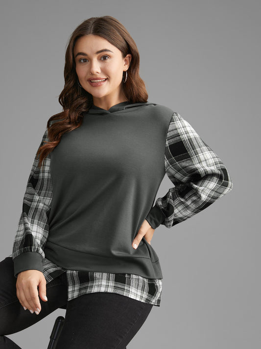 Plaid Patchwork Contrast Hooded Sweatshirt