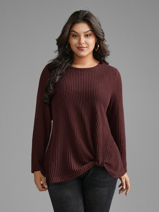 Round Neck Waffle Knit Twist Front T-shirt