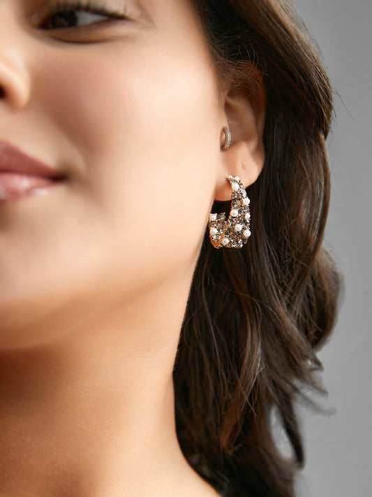 Cubic Zirconia Pearl Beaded Hoop Earrings