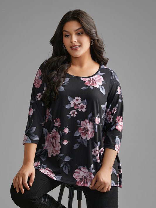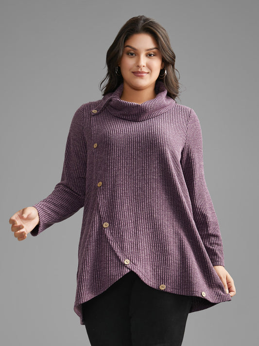 Rib Knit Button Detail Wrap Hem Sweatshirt