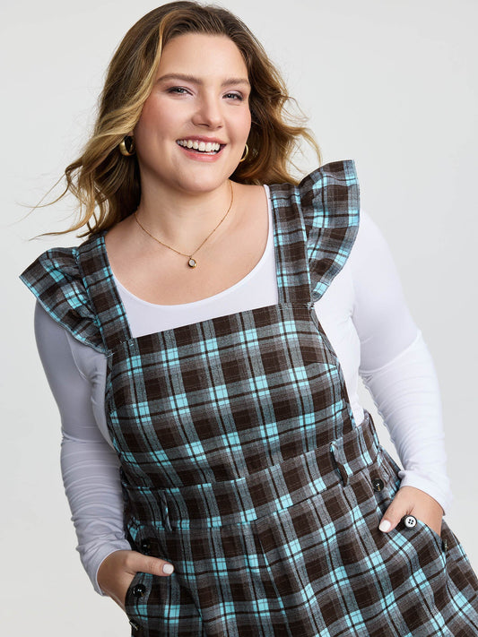 Plaid Ruffled Sleeve Backless Tie Jumpsuit