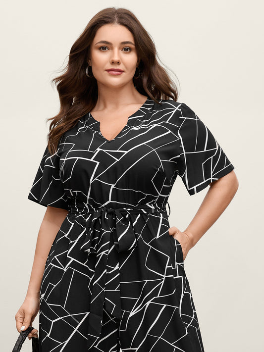 Geometric Print Waist-Defining Belted Jumpsuit