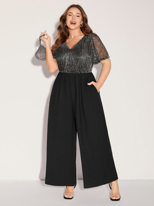 Shimmery Bow Back Tie Contrast Jumpsuit