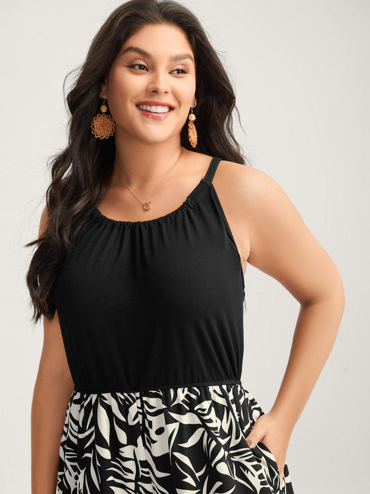 Leafy Print Halter Neck Sleeveless Jumpsuit