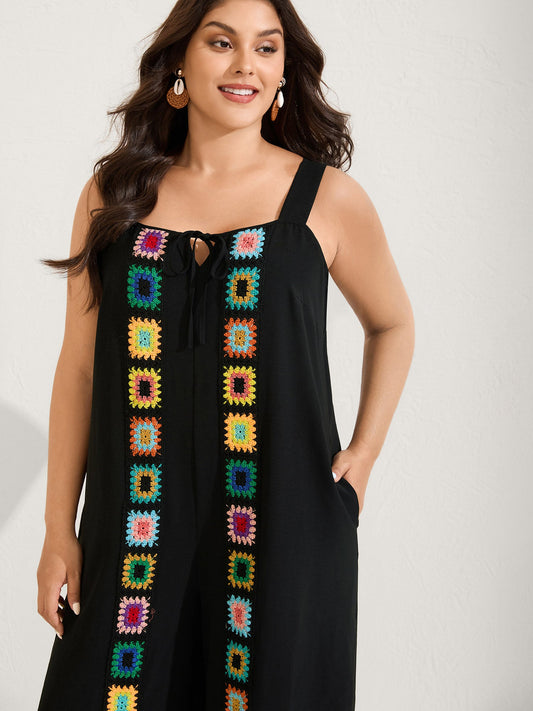 Crochet Floral Backless Neck Cut-Out Jumpsuit