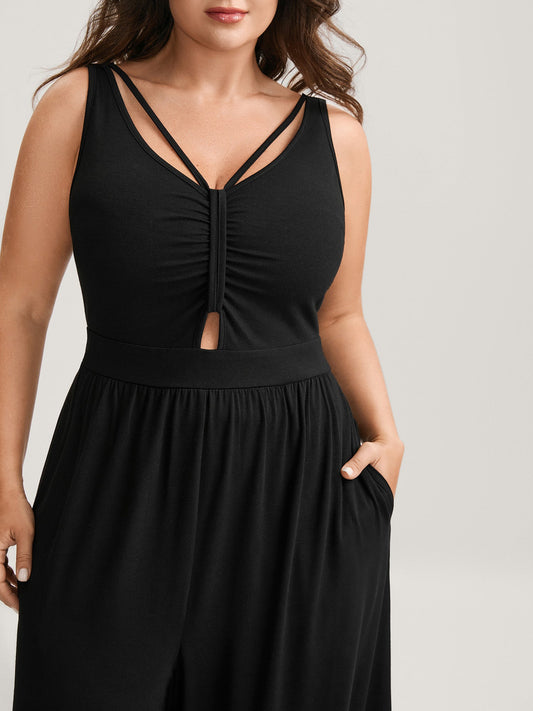 Stretchy Ruched Pleated Wide-Leg Jumpsuit