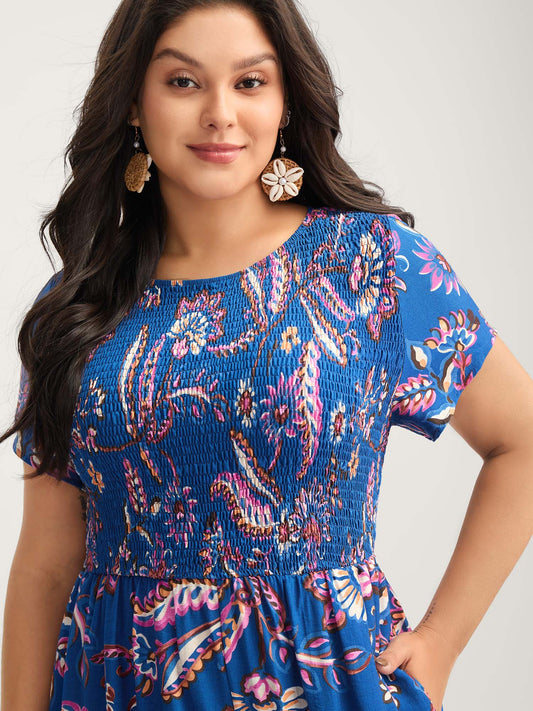 Rayon Boho Print Stretchy Waist Jumpsuit