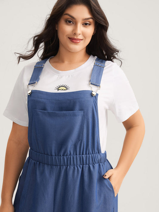 Stretchy Rayon Overall Straps Denim Jumpsuit