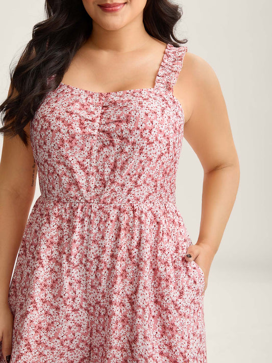 Ditsy Floral Print Shirred Tie Jumpsuit