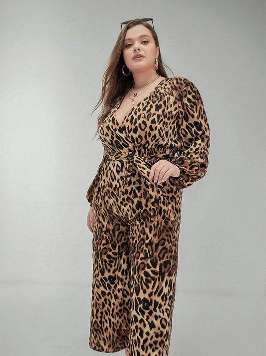 Embroidery Cuff Wide Leg Belted Jumpsuit