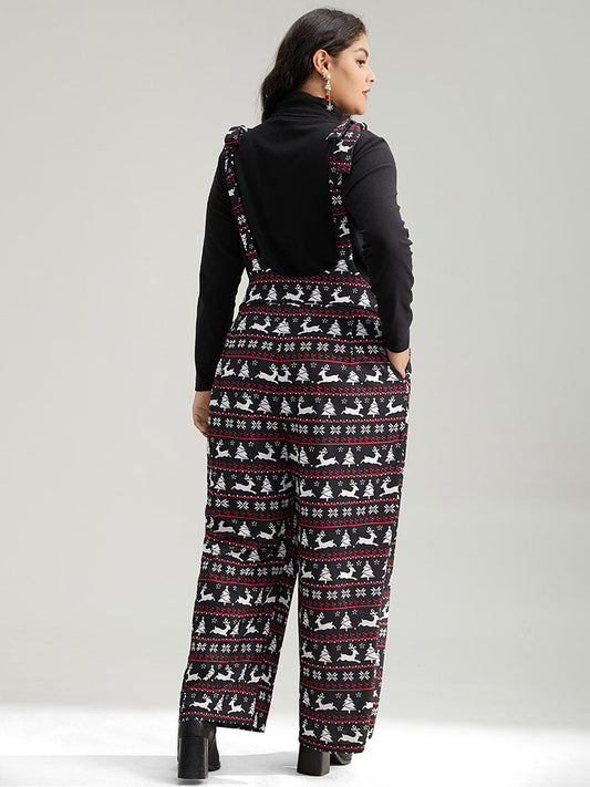 Christmas Elk Print Elastic Waist Knot Jumpsuit