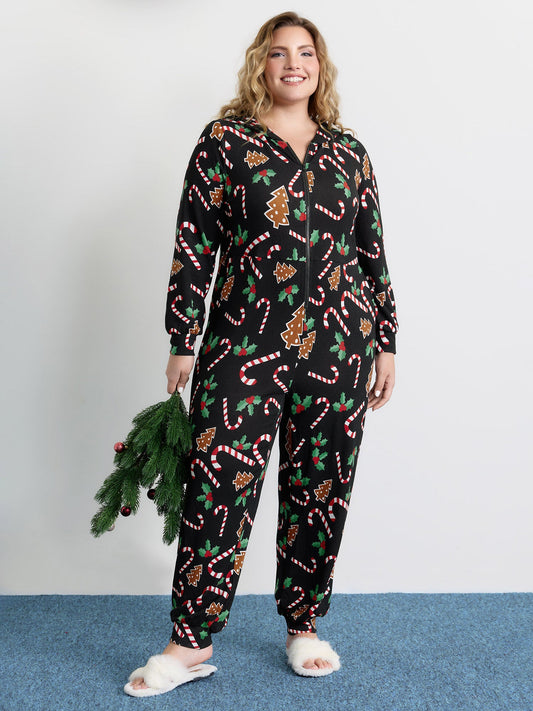Holiday Spirit Pockets Hooded Sleep Jumpsuit