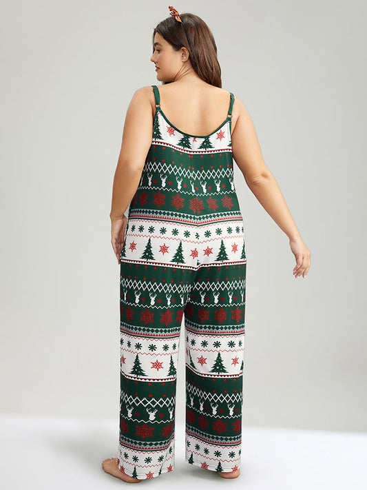 Christmas Print Pocket Cami Sleep Jumpsuit
